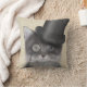 Grey Cat with Top Hat Throw Pillow