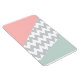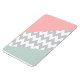 Stylish mint green and coral diagonal corners with a grey chevron center-