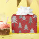 Grey Christmas trees pine RED custom background Wrapping Paper