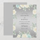 Delicate cream and pale blue blossoms adorn a soft grey backdrop, evoking a sense of gentle romance. This design features lush floral arrangements and subtle greenery, creating an elegant and serene atmosphere for a special occasion.