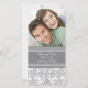Wedding save the date photo cards in elegant and modern gray and white with romantic floral vintage damask pattern. Available in matching postage, and many other products for your wedding.
