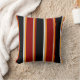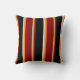 This throw pillow design features a grey, dark orange, dark red, black, and white colored striped pattern.