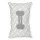 Grey dog bone silhouette in the middle with a personalizable text area for pet's name. The background color is light grey with a pattern of white dog bones