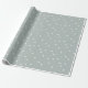White polka dots with smaller bright green dots nestled inside, all on a grey background
