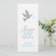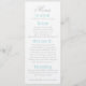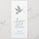 Double-sided simple grey dove with two blue ribbons wedding reception dinner menu. Uniquely designed by Sarah Trett.