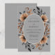 This design features a rich color palette of earthy browns and charcoal grays. Softly painted blooms and trailing foliage create a natural and elegant atmosphere. The artistic arrangement exudes a sophisticated, botanical charm.