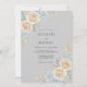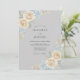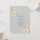 This design features a serene backdrop of soft grey adorned with delicate watercolor cream roses and clusters of light blue hydrangeas. The ethereal floral arrangements create a romantic and sophisticated atmosphere perfect for a seasonal event. Accents of sage green foliage and golden-hued leaves complete this elegant botanical aesthetic.