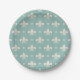Grey Fleur De Lis pattern on turquoise background Paper Plates