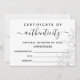 Chic minimalist certificate of authenticity in black and white with hand drawn grey flowers and greenery to which you can add your name or business name. Printed on a 5" x 7" card.