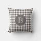 Grey Gingham Pattern Custom Monogram Throw Pillow
