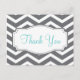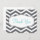 This vibrant grey gray, white and turquoise zigzag chevron Thank You message postcard is a beautiful and affordable way of sending your message of gratitude. Click customise to add your own text to the back of the postcard.
