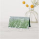 Falling snow white random dot effect and winter pine trees gray green sky wedding Tis the season to be married. Escort wedding table place cards. Write in your guests names and table number in the white boxes provided. Matches hand painted pine trees wedding collection by Sarah Trett for www.mylittleedenwedddings.com