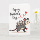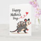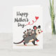 This card shows a sweet digital illustration of a large gray-furred marsupial with a gentle smile, dark expressive eyes, and pink-lined ears, standing out against a plain white background. Three smaller baby marsupials ride on its back, leaning in close as if enjoying a cozy, affectionate moment together ❤️. The parent’s friendly face and the youngsters’ matching grins create a tender, together-at-home feeling without needing any extra scenery. In the upper left area, the words “Happy Mother’s Day” appear in dark, flowing lettering that feels soft and caring. A red ribbon-like line extends from the text, curving across the top as though it’s being drawn in one smooth motion. The mostly gray and cream palette is warmed by red accents, including a small red nose on the parent and a bright heart that adds a romantic touch 🌼. The tail has a segmented look with light shading, and the red ribbon finishes at the upper right in a neatly shaped heart.