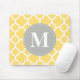 Grey Monogram Yellow Quatrefoil Pattern Mouse Pad
