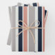 Grey Navy Blue Pink Coastal Stripes Pattern Wrapping Paper Sheets
