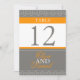 Double-sided simple modern grey and orange wedding reception table numbers. Personalise with your details. Matches the wedding menu shown below. You must change the number to each number that you need and add them each your cart, one at a time. Quantity discounts may apply once you add all the items to your cart. If you have any questions or need help or other wedding items in this style please contact me via "send a message" my little eden main page (in left panel). Design and photography by Sarah Trett.