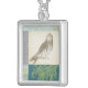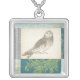 Grey Owl on Pattern Background Silver Plated Necklace