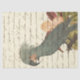 This design showcases a grey cockatoo parrot on a branch with tropical flowers on a light tan background with cursive writing. Wonderful for decoupage artwork, paper crafting, or gift wrapping.