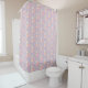 Grey pink dotted shower curtain. Artistic creative polka dot home decor cute colors design. Neutral color and pink dots home bathroom decoration. Pastel gray pink colors scheme dotted design. Original light color grayish pink aesthetic stylish shower home decor.
