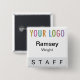 Easily personalize our square pin back staff badge with your logo, staff name, or other custom text. It attaches with a safety pin back. Designed in light grey and other colors (all colors are customizable). Our square buttons are 2 inch x 2 inch. Made in USA. No minimum order quantity and no setup fee.