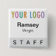 Grey Pinback Staff Badge Event Logo Square Name Button