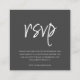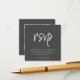 Looking for the perfect wedding RSVP card? Look no further! Our compact customizable modern wedding RSVP card features stylish white script typography that is sure to impress your guests. With a chic dark grey background, you can easily include your own custom text to make it truly unique. On the reverse, create a brand new QR code that links directly to your wedding website for easy access and convenience. Go the the "personalize" option, add your wedding website URL to the area provided, and a QR code will generate on the design just for you. Order now and let the RSVPs start rolling in!
