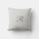 Elegant and modern light gray and white chic Moroccan quatrefoil pattern monogrammed decorative throw pillow. Fully customizable, add your initial for a truly unique home decor item.
