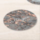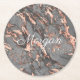 Grey & Rose Gold Marble, White Script Name Round Paper Coaster