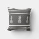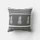 The modern design of this pillow features three symmetrically placed grey scale pineapples highlighted by strategically placed horizontal stripes.