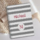 A fun Grey Stripe Red Fire Truck Print decorates this planner cover and it can be personalized with your initial and name. Matching back. View our full line of products in our Zazzle store.