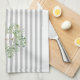 Grey Striped Foliage Heart Love Kitchen Towel