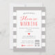 Warm grey and white stripes with coral pink accents create a feminine and masculine house warming party invitation design. "Heart" and "Key" elements are move-able when you click "customize it"