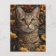 Grey Tabby Cat in Fall Flowers Garden Postcard