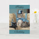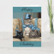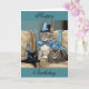 Grey tabby cat with a cape and top hat birthday card