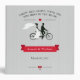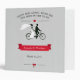 Vintage tandem bicycle binder for the bride and groom to keep track of the wedding plans. Quote on front says "grow old along with me, the best is yet to be". Silhouette image of bride and groom riding a tandem bike with a red banner a grey striped background. Matches our tandem bicycle wedding invitation set.