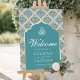 Grey Teal Damask Muslim Wedding Welcome Sign