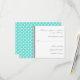 Wedding RSVP cards in elegant and contemporary charcoal gray, turquoise aqua blue, light pastel mint green and white retro and casual circles and diamonds geometric pattern. Customizable with your wedding details, available in many matching wedding products.