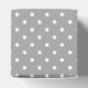 White on grey polka dot pattern with pastel pink accent baby shower thank you favor box. The design features a white and grey polka dot pattern and a quatrefoil shape with your custom text.