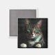 Grey & White Cat with Blue Eyes & Matching Collar Magnet