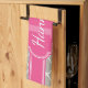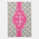 Grey White Lattice Pattern Pink Monogram Kitchen Towel