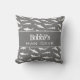 Fun grey Man Cave throw pillow featuring a pattern of white sharks, including great whites, hammerheads, threshers, and mako. The centre of the pillow hosts a bold strip containing your chosen name, and the words man cave. Click CUSTOMISE to change the wording to suit your requirements. You can also change the background colour of the pillow, to suit your home decor.