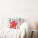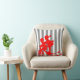 Grey and white throw pillow designed with red silhouette of a little boy towing a little girl on a tricyclye