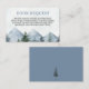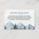 Winter, wilderness themed baby shower book request featuring some mountains and pine trees and faintly colored snow flakes. This baby it's cold or wilderness themed baby shower books for baby is ideal for a winter baby shower.