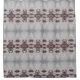 Decorative bath decor, a shower curtain with light and dark grey, pinks, a touch of green and burgundy wine.