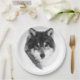 Grey Wolf Canis lupus animal portrait in black and white. An attractive paper plate for anyone. You can transfer this design to another product of your choice, just use an option to the right of this description.