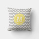 Elegant and modern bright yellow, gray and white chevron zigzags stripes pattern custom monogram decorative throw pillow. Fully customizable, add your own initial for a truly unique home decor item.