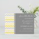Wedding save the date announcement card with elegant and contemporary charcoal gray, bright lemon yellow and white modern zigzags chevron pattern. Customizable with your wedding details, available in a wide range of matching wedding products. Contact us to request a color change or a custom product.
