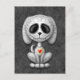 This adorable grey puppy design is decorated with swirls and dot patterns. Delicate flower pedals circle the pure black eyes in the tradition of the Day of the Dead sugar skulls. The little dog is sitting down, looking forward with its tail waving in the background. The over sized head sits on a tiny body which creates a playful, cartoon like appearance. A five point star sits in the middle of the puppy’s forehead while a bright red and yellow heart appears in the center of the chest. This cute little puppy is a fun and stylish design inspired by the beautiful patterns of Day of the Dead sugar skulls.