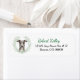A portrait of a gray and white Greyhound Dog inside a pale green leaf watercolor eucalyptus wreath is the feature on the left side of these return address labels. Choose "Edit this Design" to change the green and black text to your own.