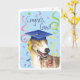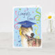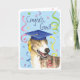 Congratulate your favorite graduate with a gift featuring a cute, happy Greyhound graduate wearing a mortarboard amid a flurry of confetti.